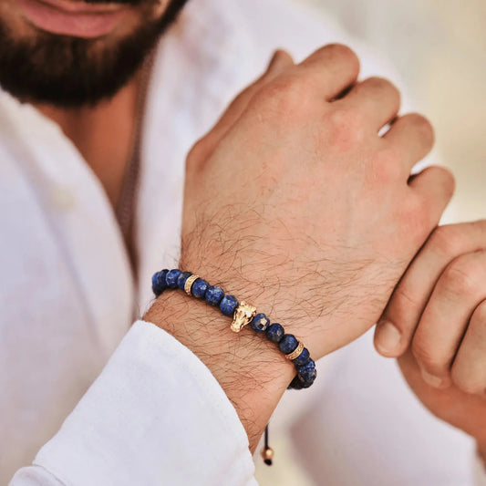 Men's LAPIS LAZULI Bracelet with Golden ARABIAN Horse