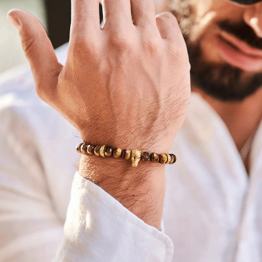Men's TIGER EYE Bracelet with Golden ARABIAN Horse