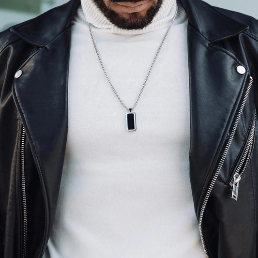 Silver Necklace with Rectangle BLACK ONYX Pendant