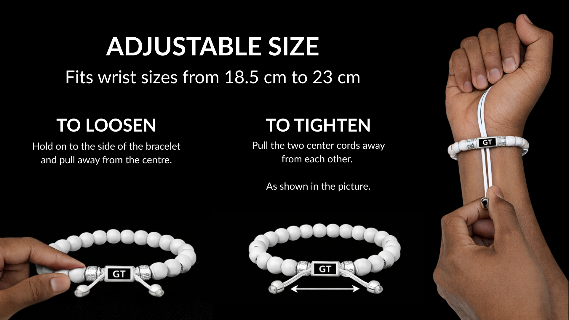 • Comfortable fit for wrist sizes 7.2" to 9" (18.5 cm – 23 cm)